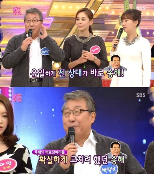 이에 박일남은 "딱 한번 진 적이 있는데 그게 송해 선생님이었다. 뺨을 맞았었다. 당시 내 벼르장머리를 고치겠다고 아주 따끔하게 혼내셨었다"고 밝혔다.