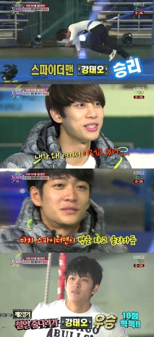 이후 강태오는 제작진과의 인터뷰에서 "스파이더맨처럼 발과 바닥의 마찰을 잘 이용한 것 같다"는 자신만의 비결을 공개했다.