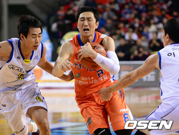 12일 오후 인천삼산실내체육관 열린 '2013-14시즌 KB국민카드 프로농구' 인천 전자랜드와 서울 삼성의 경기 1쿼터 전자랜드 정영삼이 삼성 김태주를 상대로 돌파를 시도하고 있다.