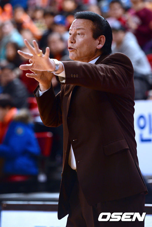 12일 오후 인천삼산실내체육관 열린 '2013-14시즌 KB국민카드 프로농구' 인천 전자랜드와 서울 삼성의 경기 1쿼터 삼성 김동광 감독이 작전 지시를 하고 있다.