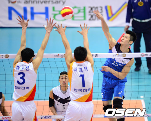 12일 오후 경기 수원 조원동 수원실내체육관에서 '2013-2014 NH농협 V리그' 남자부 한국전력과 현대캐피탈의 경기가 열렸다.