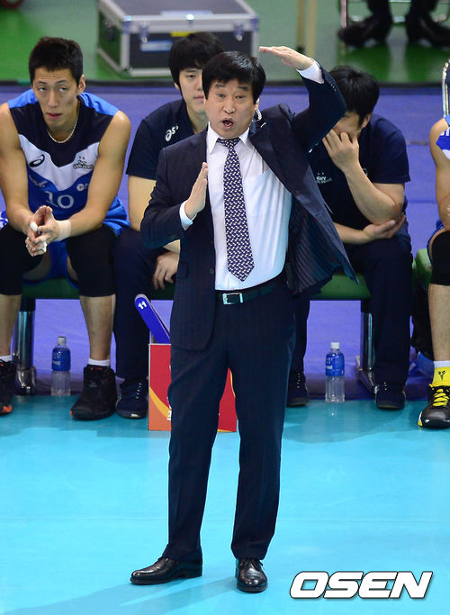 2세트 현대캐피탈 김호철 감독이 선수들에게 작전을 지시하고 있다.