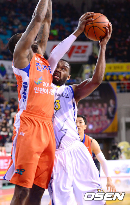 12일 오후 인천삼산실내체육관 열린 '2013-14시즌 KB국민카드 프로농구' 인천 전자랜드와 서울 삼성의 경기 4쿼터 삼성 존슨이 골밑슛을 시도하고 있다.