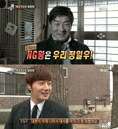 ‘황금무지개’ 녹화장에서 정일우는 유이(애프터스쿨)와의 대사 도중 NG를내며 NG왕의 면모를 보였다. 정일우는 이와 관련해 "대본이 어제 나와서 대사를 아직 다 못 외웠다"고 변명해 웃음을 자아냈다.
