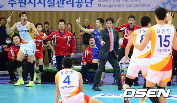 4세트 한국전력 신영철 감독이 팀의 실점 판정에 강하게 어필하고 있다.