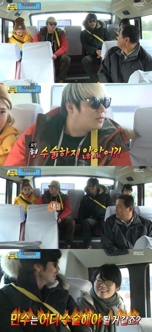 이에 윤민수는 샘을 내며 "형 수술하지 않았냐. 난 잘생겨서 수술한 줄 알았다"고 딴지를 걸었다. 이종혁도 지지않고 "민수는 어디 수술해야 되지 않겠냐"면서 "어차피 얼굴 없는 가수다. 음악으로 승부하는 친구니까"라고 너스레를 떨어 웃음을 자아냈다.