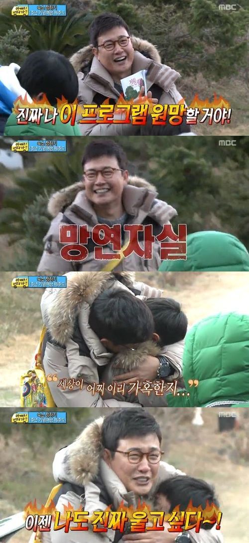 민국의 모습이 김성주는 아들을 안아주며 "나도 울고싶다"고 토로해 웃음을 자아냈다.