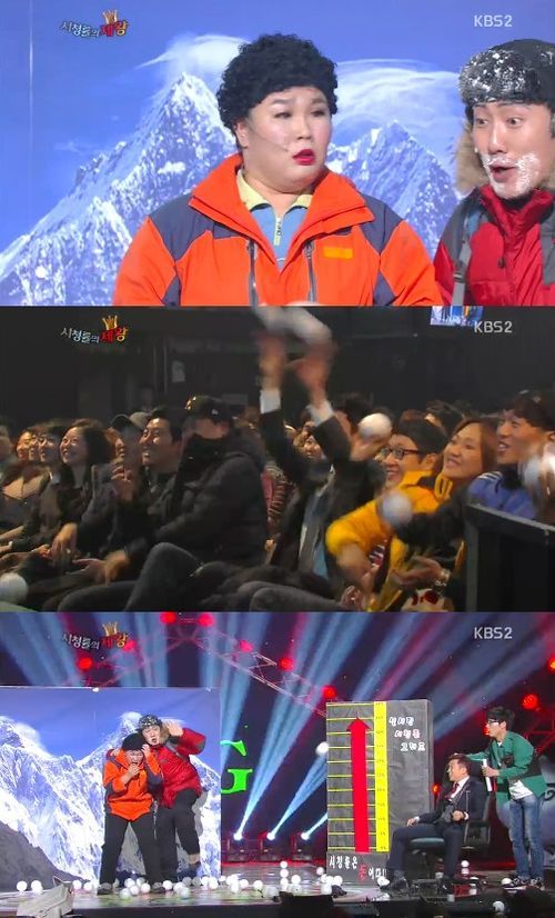 그러자 관객들은 스티로폼으로 된 눈을 김민경과 이상훈을 향해 던졌다. 관객석에 앉아있던 야구선수 류현진도 함께 눈을 던지자, 이를 본 이상훈은 류현진을 향해 “세게 던지지마. 당신이 던진 거 맞으면 죽어”라고 말해 관객들을 폭소케 했다.