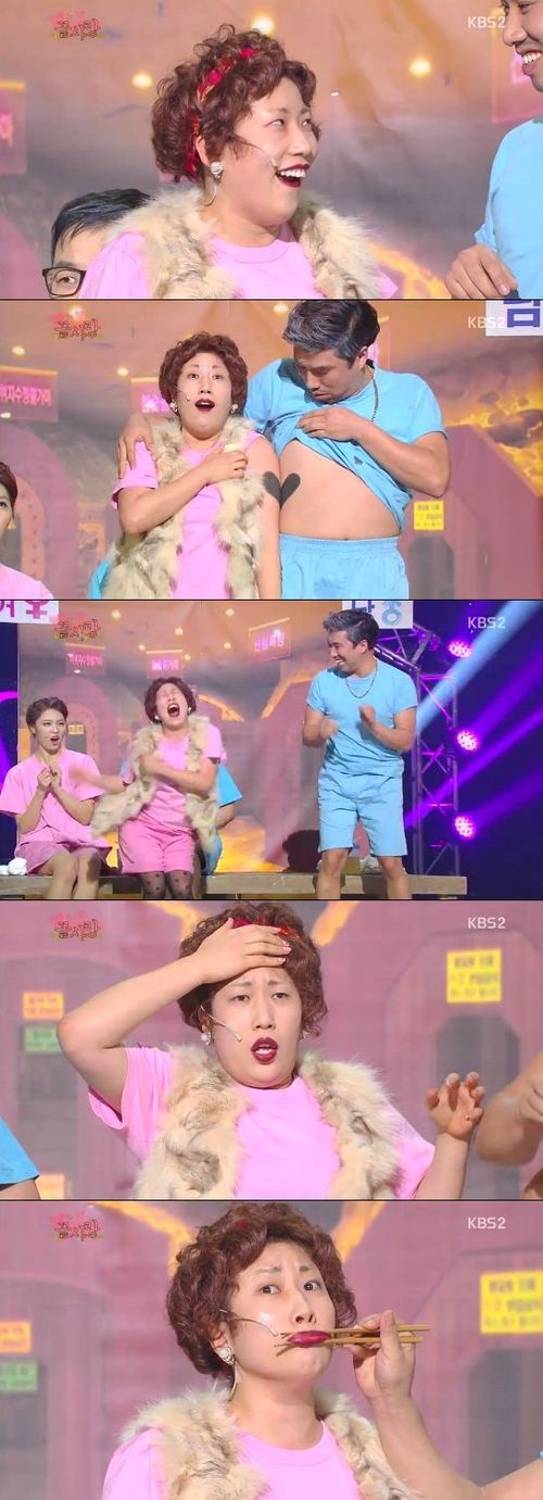 12일 오후 9시 15분 방송된 KBS 2TV '개그콘서트'의 '끝사랑'에는 찜질방에서 벌어진 돌싱들의 이야기가 담겼다.