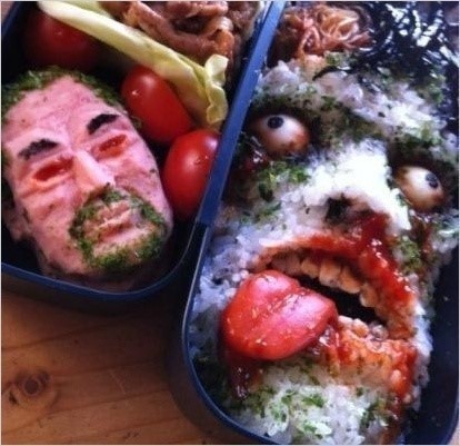 최근 인터넷 커뮤니티에는 ‘무서운 아침밥’ 시리즈가 올라 커다란 관심을 끌었다. 공개된 사진들은 도시락. 그러나 괴물같은 남자가 혀를 내밀고 피를 쏟고 있거나 구렛나루를 기른 털보남자가 입을 꾹 다문 모습도 보였다.