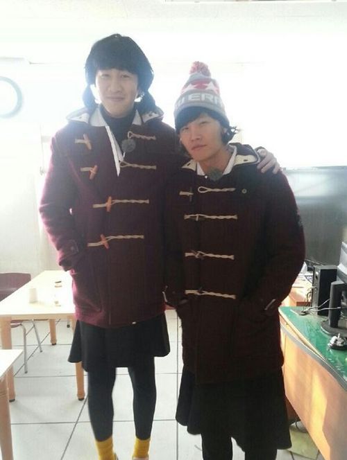 공개된 사진 속 이광수와 김종국은 여고생의 모습을 연출하고 있다. 특히 김종국 양갈래머리는 평소 이미지와는 정반대여서 더욱 웃음을 자아낸다.