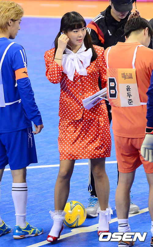 13일 오전 서울 잠실 학생체육관에서 열린 MBC '아이돌스타 육상 양궁 풋살 컬링 선수권 대회'(이하 '아육대')현장공개에서 맹승지가 플로어 사회를 보고 있다.
