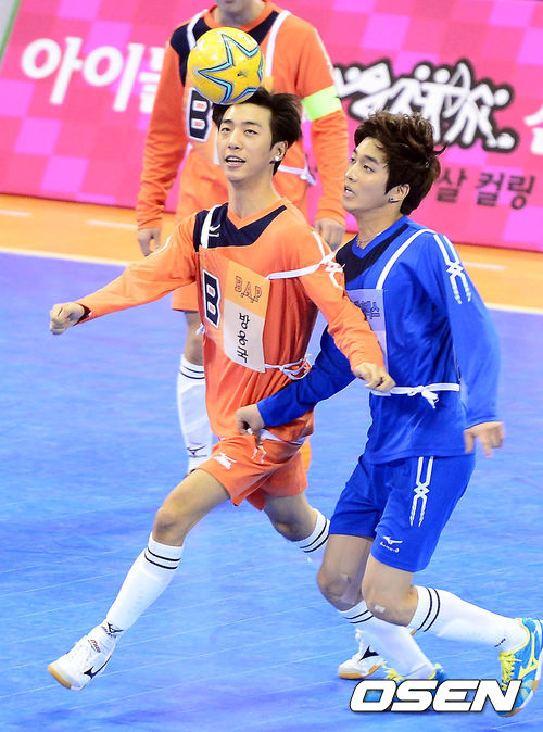 13일 오전 서울 잠실 학생체육관에서 열린 MBC '아이돌스타 육상 양궁 풋살 컬링 선수권 대회'(이하 '아육대')현장공개에서 방용국이 볼을 다루고 있다.