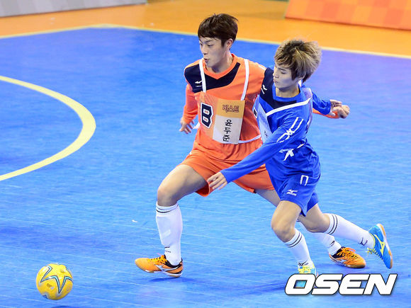 13일 오전 서울 잠실 학생체육관에서 열린 MBC '아이돌스타 육상 양궁 풋살 컬링 선수권 대회'(이하 '아육대')현장공개에서 윤두준이 볼다툼을 하고 있다.