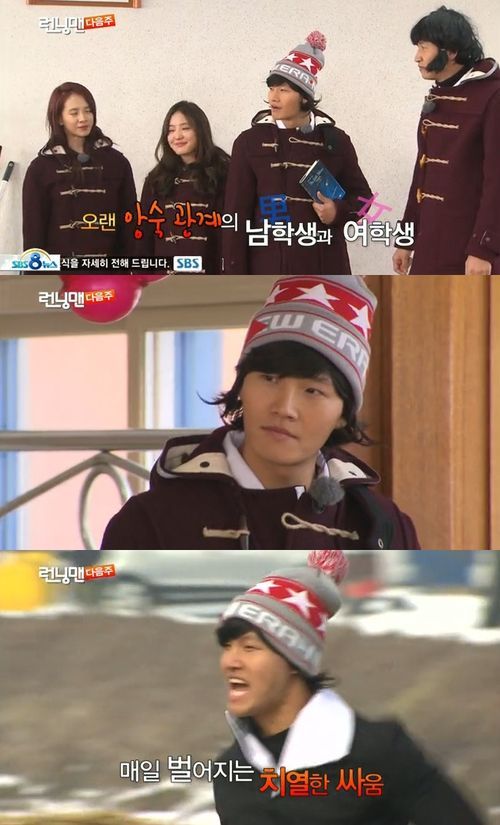김종국은 단발머리에 비니를 착용하고 이광수는 양갈래 머리를 한 채 나타나 웃음을 자아냈다. 특히 큰 체격의 김종국은 평소 이미지와는 달라 더욱 반전을 줬다. 김종국은 여자 교복에 가발까지 썼지만 힘을 과시해 웃음을 선사했다.