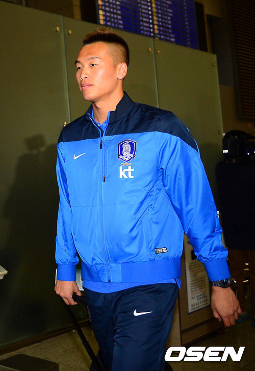 김신욱이 출국장으로 들어서고 있다.