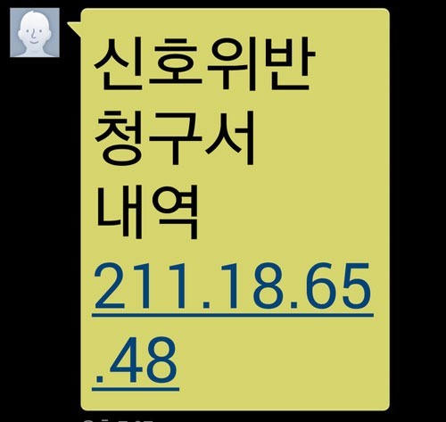 신호 위반 청구서 문자를 위장한 스미싱 사기가 기승을 부리고 있다. 최근 다수의 온라인 커뮤니티에서는 '신호 위반 청구서 문자 주의'를 내리고 있다. 휴대전화 문자메시지와 메신저를 이용해 신호위반 청구서 내역이라는 제목과 아이피주소(OP Address)가 적긴 문자가 퍼지고 있기 때문이다.