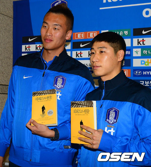 이근호와 김신욱이 포토타임을 갖고 있다.