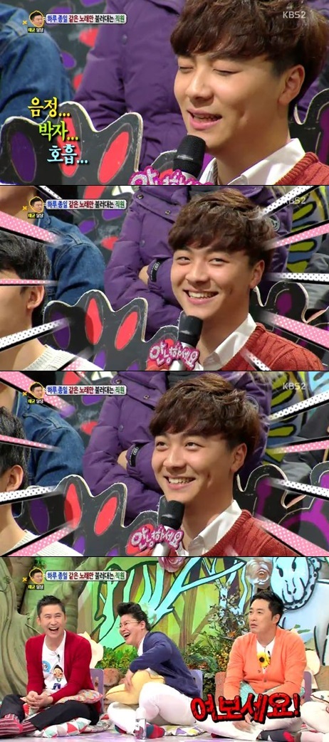 하루 종일 같은 노래만 부르는 훈남의 반전 성대가 큰 웃음을 안겼다.