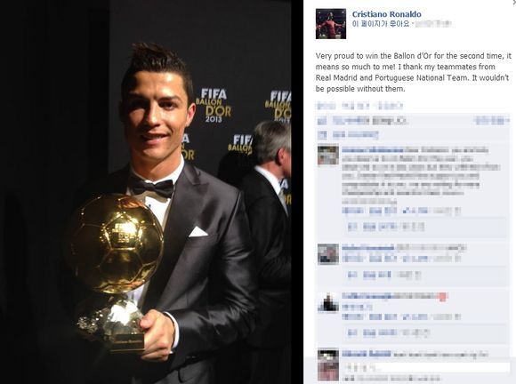 이에 호날두는 자신의 페이스북을 통해 "두 번째 발롱도르를 받아 정말 자랑스럽다. 내겐 많은 의미가 있다"면서 "레알 마드리드와 포르투갈 대표팀 동료들에게 감사했다. 그들이 없었다면 가능하지 않았다"고 재차 소감을 밝혔다.