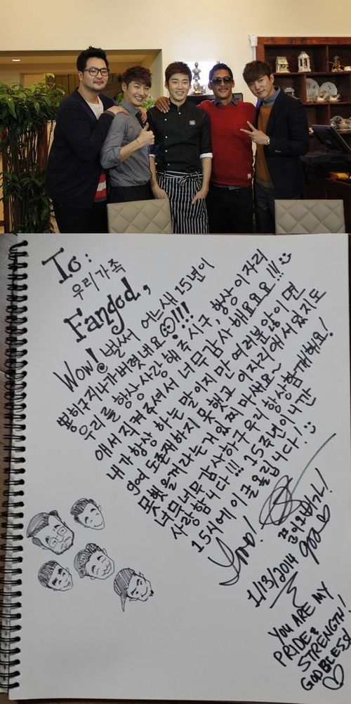 사진 속 편지에는 박준형이 직접 쓴 듯 서툰 한글로 팬들을 향한 고마움의 마음을 표현한 글이 담겨 있다. god 멤버 한 명 한 명의 캐릭터를 실감있게 캐리커쳐로 표현한 것이 눈길을 끈다.