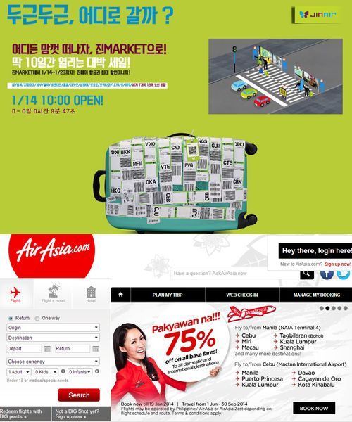 [OSEN=이슈팀] 진에어(대표 마원, www.jinair.com)와 에어아시아가 할인 이벤트에 돌입했다.