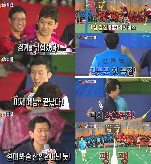 이날 방송에는 박주봉-김동문와 현역 선수 이용대-유연성의 경기가 펼쳐졌다. 숨 막히는 긴장감을 선사하며 팽팽한 접전을 벌인 끝에 21대 18로 이용대-유연성 팀이 승리했다.