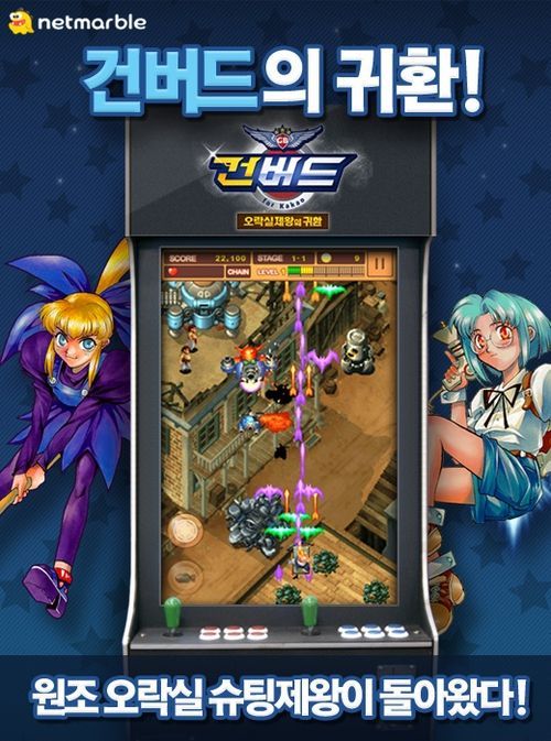 오락실 슈팅게임의 강자 ‘건버드’의 인기가 모바일로 이어졌다. CJ E&M 넷마블의 모바일 슈팅게임 '건버드:오락실제왕의 귀환 for Kakao(이하 건버드)'가 출시 13일만에 100만 다운로드를 돌파하며 인기행진을 시작했다.