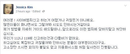 김가연은 15일 자신의 페이스북에 “여러분! 사이버범죄신고 하는 것 어렵거나 귀찮은 것 아니에요. 많은 이들이 화마면서도 그럴까봐 시도도 안하시는 것 같아요”라며 “제가 방법을 자세히 가이드해드릴테니 앞으로라도 이런 범죄에 당하지 마세요”라는 글을 게재했다.