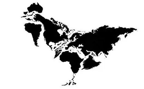 닭 모양 세계지도는 오대륙을 새롭게 재배치 하자 마치 수탉의 외관과 비슷한 모습을 하고 있어 놀라움을 자아내고 있다.