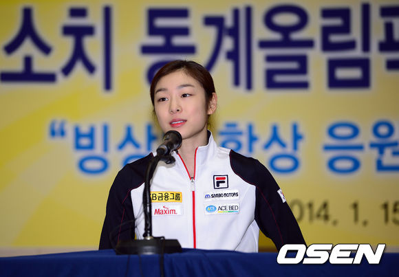 15일 오후 서울 태릉선수촌 국제스케이트장 내 기자회견장에 열린 '2014 소치 동계올림픽' 빙상국가대표선수단 미디어 데이 행사에서 김연아가 소감을 말하고 있다
