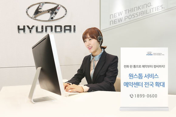 현대자동차 차주라면 전국에서 전화만으로 정비 예약이 가능해진다. 현대차는 전화로 가장 가까운 서비스 거점에서 원하는 시간에 정비 서비스를 받을 수 있도록 안내해 주는 원스톱 ‘서비스 예약센터’를 전국으로 확대 운영한다고 15일 밝혔다.