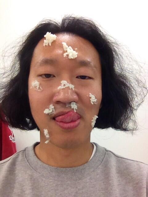사진 속 김경진은 얼굴 여기저기에 밥풀을 묻히고 혀를 내밀고 있다. 사진을 통해 개리의 노래 ‘조금 이따 샤워해’에 대한 감상평을 남긴 것이다.