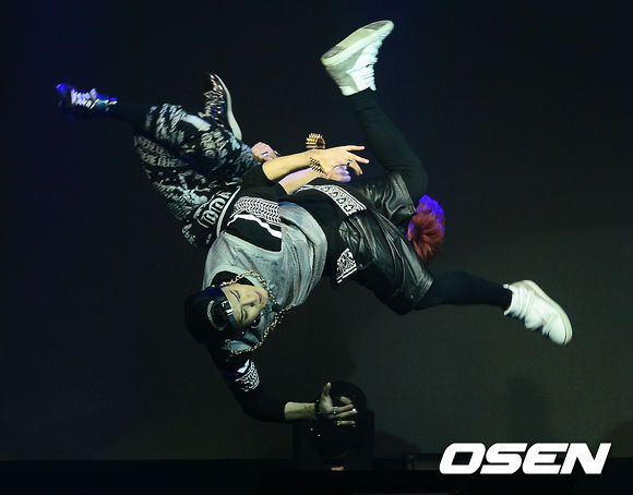 15일 오후 서울 성수동 대림창고에서 'Garage Showcase'라는 타이틀로 열린 JYP가 최초의 힙합그룹 갓세븐(GOT7)의 데뷔 쇼케이스에서 갓세븐이 화려한 안무를 선보이고 있다.