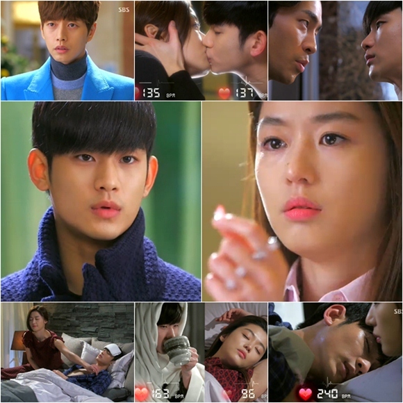 도민준은 천송이와의 키스 후 고열에 시달리며 아파했다. 특히 천송이가 가까이에 오기만 해도 심장 박동 수가 높게 치솟으며 이상 증세를 보였다. 천송이는 그런 도민준을 걱정하며 정성스레 간호했다. 도민준은 천송이에게 귀찮다며 툴툴거렸지만 싫지 않은 기색이었다.