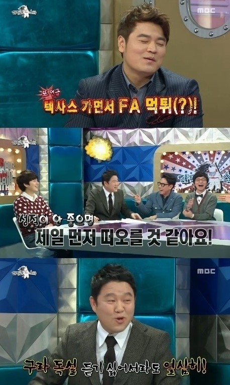 김구라가 장기계약문제, 수비 실책, 먹튀 등을 언급하며 독설을 내뱉자 추신수는 “내 성적이 안 좋아지면 김구라가 제일 먼저 떠오를 것 같다”고 말해 스튜디오를 웃음바다로 만들었다.
