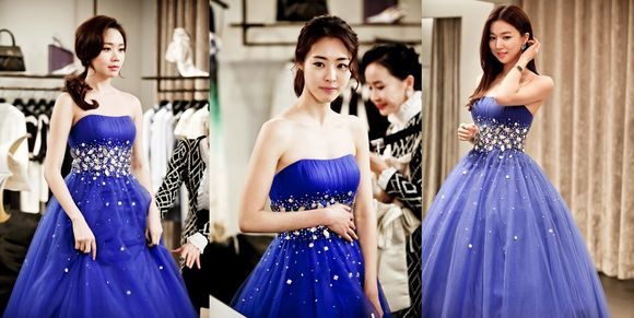 극 중 미스코리아 합숙소 앞 레드카펫에서 선보일 이 의상은 파란색에 화려한 큐빅 장식이 특징인 드레스. 이날 방송에서 퀸 미용실의 김재희와 체리 미용실의 신선영, 그리고 오지영까지 최고급 드레스숍에서 드레스를 입어보게 된다. 그러나 최고급 드레스인 만큼 옷은 단 한 벌. 때문에 이 드레스를 쟁취하기 위한 3인의 뜨거운 경쟁이 그려질 예정이다.