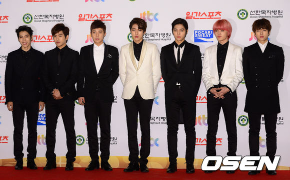 시상식에 앞서 가수 인피니트가 포토타임을 하고 있다.