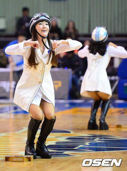 16일 오후 서울 잠실 실내체육관에서 열린 '2013-14시즌 KB국민카드 프로농구' 서울 삼성과 부산 KT의 경기, 삼성 치어리더가 멋진 공연을 선보이고 있다.