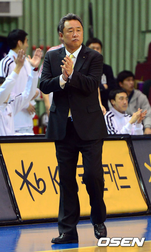 16일 오후 서울 잠실 실내체육관에서 열린 '2013-14시즌 KB국민카드 프로농구' 서울 삼성과 부산 KT의 경기, 3쿼터 KT 전창진 감독이 선수들의 플레이에 박수를 치고 있다.