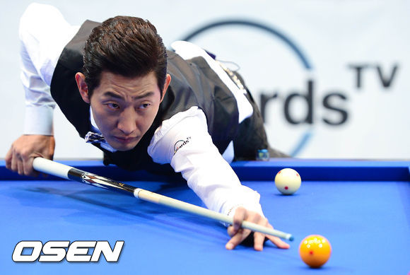 17일 오후 서울 신도림 디큐브시티에서 열린 '빌리어즈TV 인비테이셔널 슈퍼매치'에서 김창렬이 샷을 하고 있다.