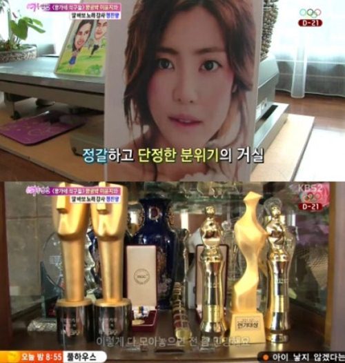 이날 방송에 나온 이윤지의 집은 정갈하고 단정한 분위기였다. 거실 한 가운데에는 이윤지의 대형 사진이 놓여있고 거실장에는 그동안 이윤지가 받은 많은 트로피들이 진열되어 있었다.
