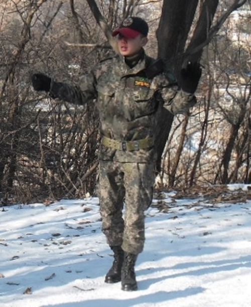 지난 16일 육군 제 27사단(이기자부대) 신병교육대대 공식카페에는 훈련병들에게 경계교육을 하고 있는 유승호의 사진이 올라왔다.