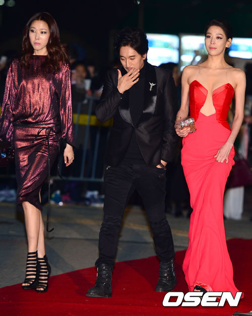 17일 오후 서울 올림픽공원 올림픽홀에서 열리는 2014 아시아모델 시상식에 앞서 사회를 맡은 한혜진과 신현준, 한고은이 레드카펫을 밟고 있다