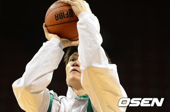 17일 오후 안양실내체육관에서 열린 'KB국민카드 2013-2014 프로농구' 안양KGC와 원주동부의 경기, 경기에 앞서 지난 1일 LG전에서 발목 부상을 당한 동부 김주성이 슛 연습을 하고 있다.