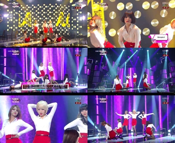AOA는 17일 오후 생방송으로 진행된 KBS 2TV '뮤직뱅크'에 출연해 신곡 '짧은 치마' 무대를 공개했다.