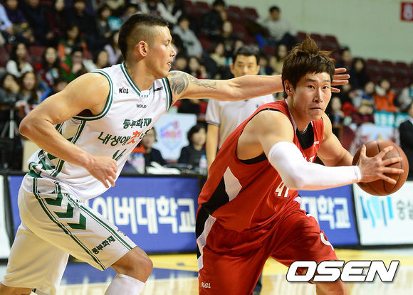 17일 오후 안양실내체육관에서 열린 'KB국민카드 2013-2014 프로농구' 안양KGC와 원주동부의 경기, 3쿼터 KGC 오세근이 동부 이승준의 수비를 피해 골밑돌파를 시도하고 있다.
