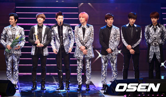 17일 오후 서울 올림픽공원 올림픽홀에서 열린 2014 아시아모델 시상식에서 AMAF 인기가수상을 받은 인피니트가 소감을 말하고 있다.
