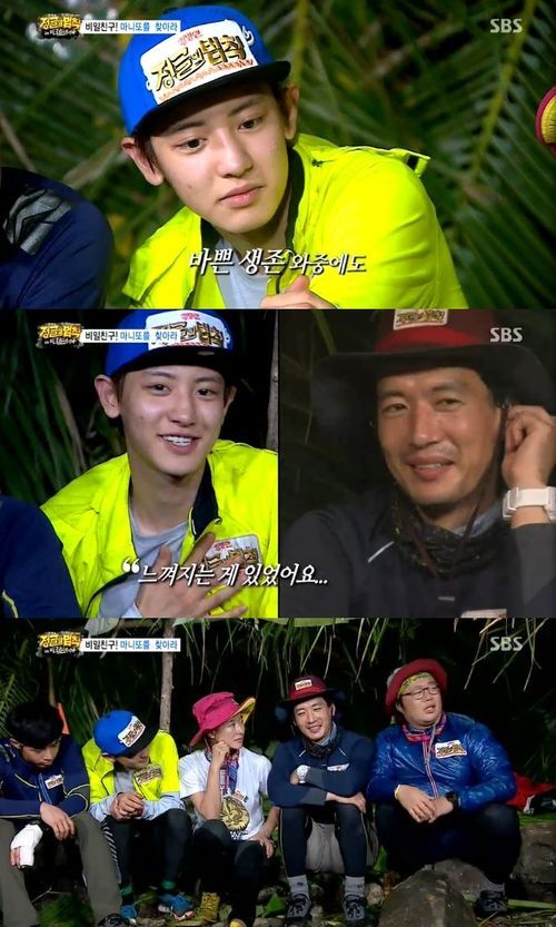 찬열은 17일 오후 방송된 SBS 예능프로그램 '정글의 법칙 in 미크로네시아'(이하 '정글의 법칙')에서 첫 번째 생존지에서 마지막 밤을 보내며 멤버들과 마니또 공개를 하던 중 자신의 마니또로 박정철을 지목했다.