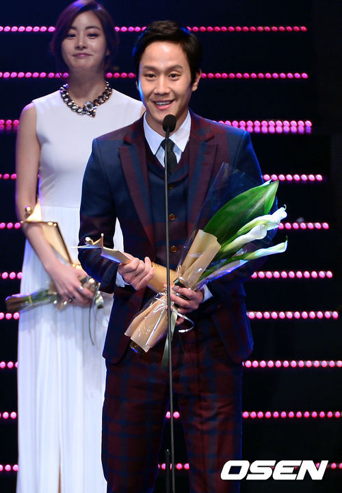 17일 오후 서울 올림픽공원 올림픽홀에서 열린 2014 아시아모델 시상식에서 AMAF 인기스타상을 수상한 배우 정우가 소감을 말하고 있다.